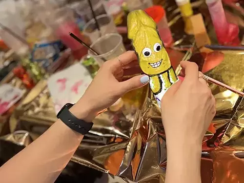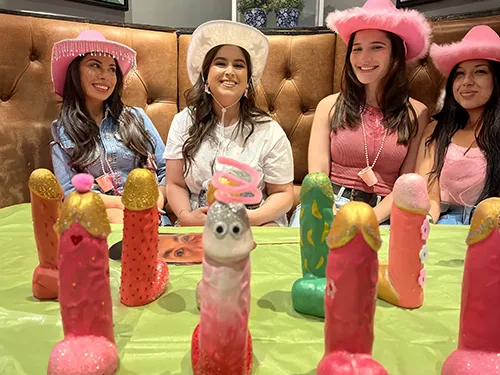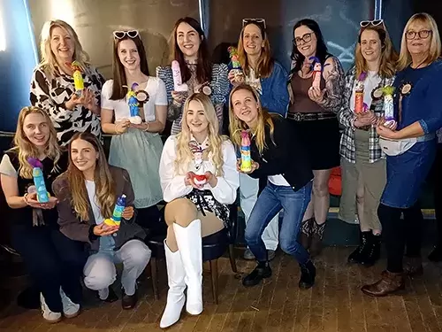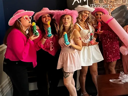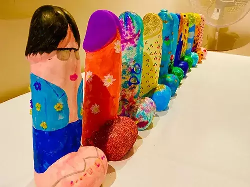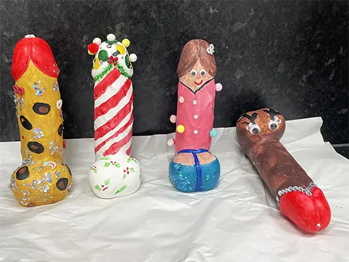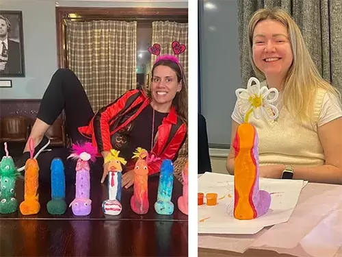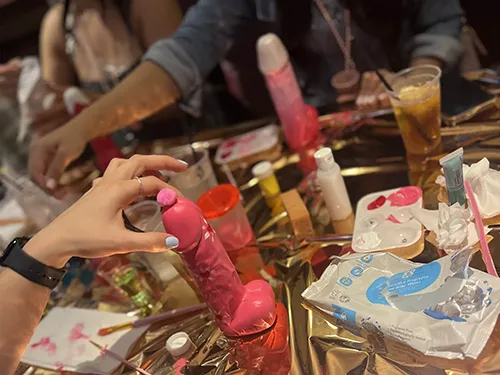 A London Dickorate workshop is a relaxed, guided session in a private city centre venue where you’ll paint and decorate your own ceramic penis. A friendly instructor welcomes your group, hands out the ceramic pieces and provides everything you need to get creative, including paints, brushes, glitter, feathers, jewels and all the fun extras.
